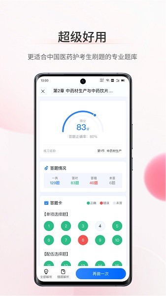 2、海量题库:全面覆盖执业医师、执业药师、护理、健康管理师等主要学科。我们有您想要的所有问题!
